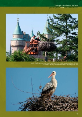 Zoologická záhrada Bojnice Výročná správa 2009 The Annual Report Ing. V. Šrank (vpravo) je už mnoho rokov aktívnym krúžkovateľom bocianov bielych. Pravidelne označuje mláďatá narodené v areáli bojnickej zoo. 93