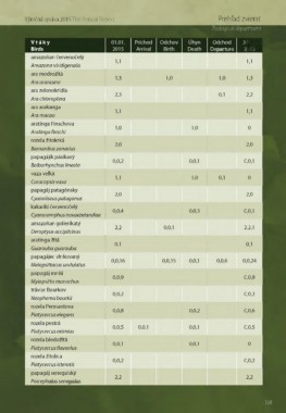 Výročná správa 2015 The Annual Report Prehľad zvierat