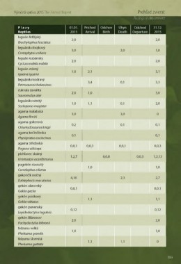 Výročná správa 2015 The Annual Report Prehľad zvierat