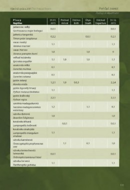 Výročná správa 2015 The Annual Report Prehľad zvierat