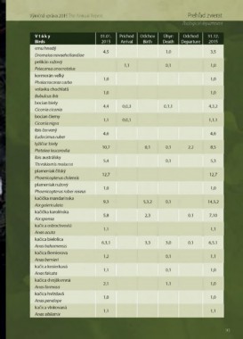 Výročná správa 2015 The Annual Report Prehľad zvierat