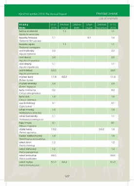 Výročná správa 2016 The Annual Report Prehľad zvierat
