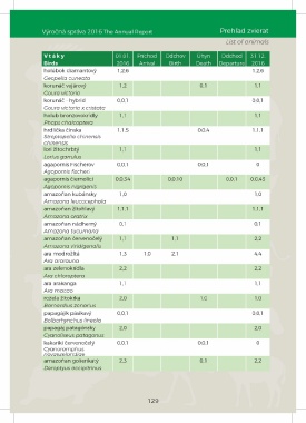 Výročná správa 2016 The Annual Report Prehľad zvierat