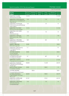 Výročná správa 2016 The Annual Report Prehľad zvierat