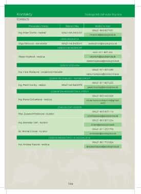 Oľga Pánisová - sekretariát 00421-46-5403241 zoobojnice@ zoobojnice.sk