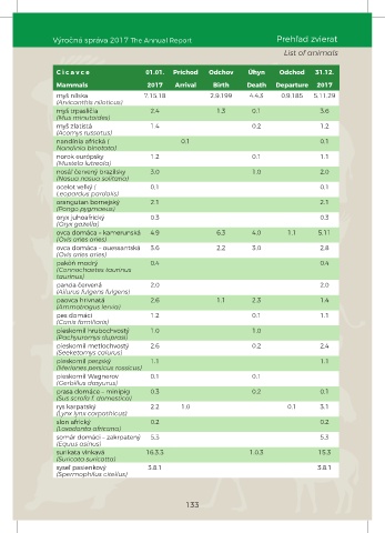 Výročná správa 2017 The Annual Report Prehľad zvierat
