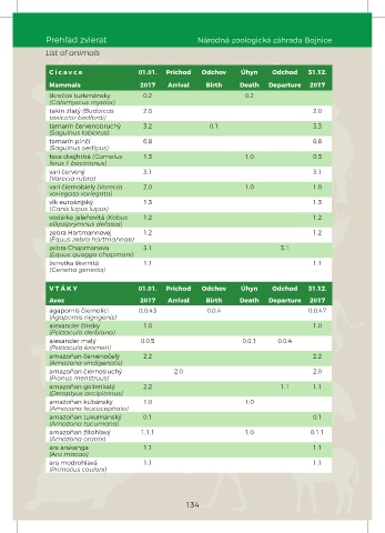 Prehľad zvierat Národná zoologická záhrada Bojnice