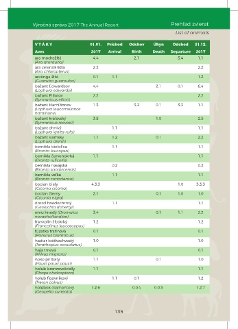 Výročná správa 2017 The Annual Report Prehľad zvierat