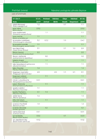 Prehľad zvierat Národná zoologická záhrada Bojnice