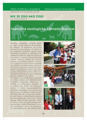 Odbor marketingu a propagácie Národná zoologická záhrada Bojnice
