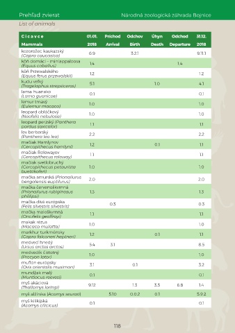 Prehľad zvierat Národná zoologická záhrada Bojnice