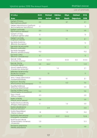 Výročná správa 2018 The Annual Report Prehľad zvierat