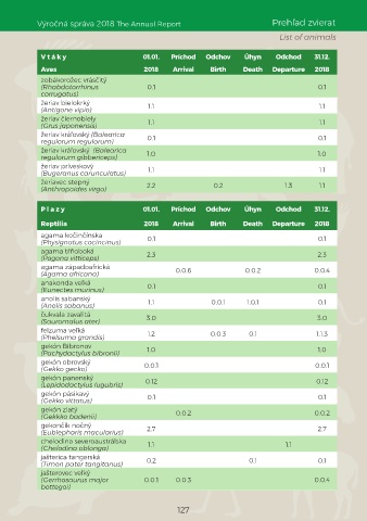 Výročná správa 2018 The Annual Report Prehľad zvierat