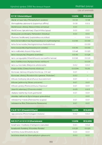 Výročná správa 2018 The Annual Report Prehľad zvierat