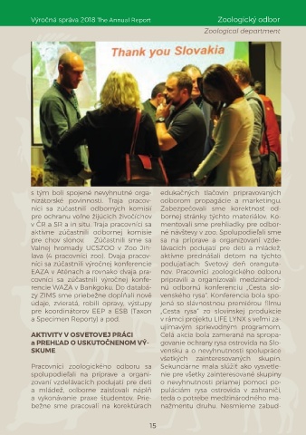 a mládež, odborne zaisťovali náplň puláciám rysa ostrovida v zahraničí,