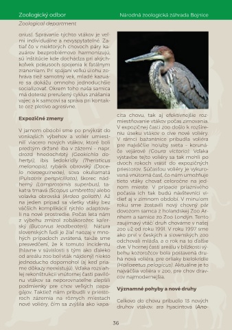 predtým držané iba v zázemí – napr. če vejárové (Goura victoria). Vďaka