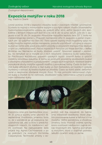 Letná sezóna 2018 v expozícii motýľov bola z viacerých hľadísk výnimočná.
