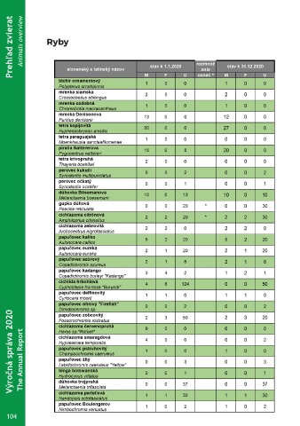 Prehľad zvierat Animals overview Ryby Výročná správa 2020 The Annual Report 104