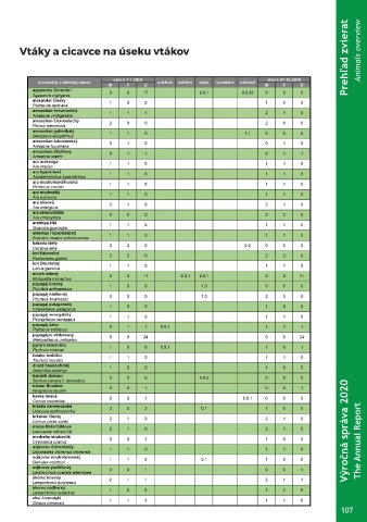 Prehľad zvierat Vtáky a cicavce na úseku vtákov Animals overview Výročná správa 2020 The Annual Report 107